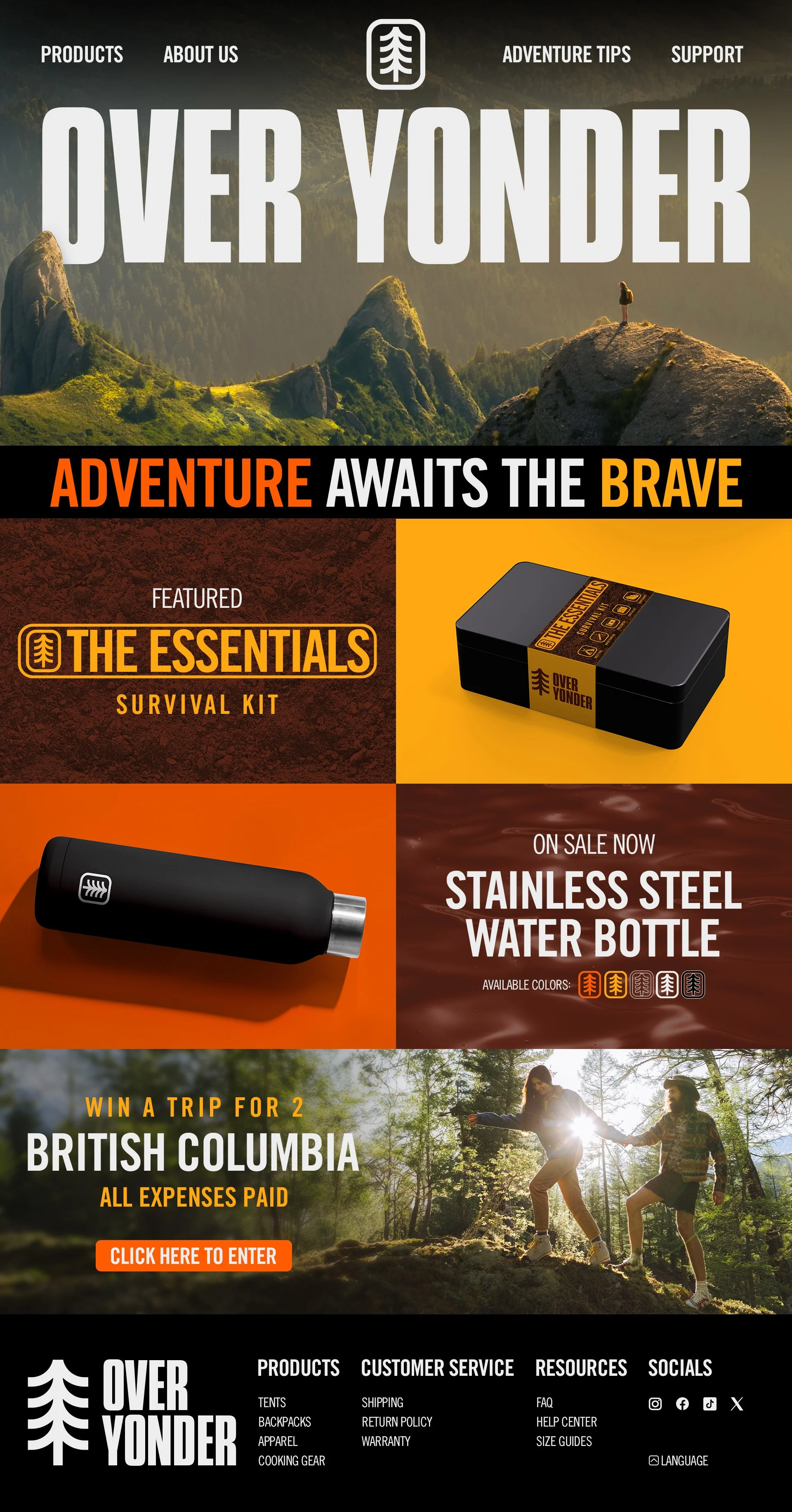 Over Yonder is a camping equipment brand designed for those who seek more than just an adventure. They are about redefining outdoor experiences through gear that is as resilient and fearless as their customers. Over Yonder is not just another equipment company, they are a call to explore uncharted territory and to reach unthinkable heights with the knowledge that the equipment on your back can handle anything the adventure throws your way.